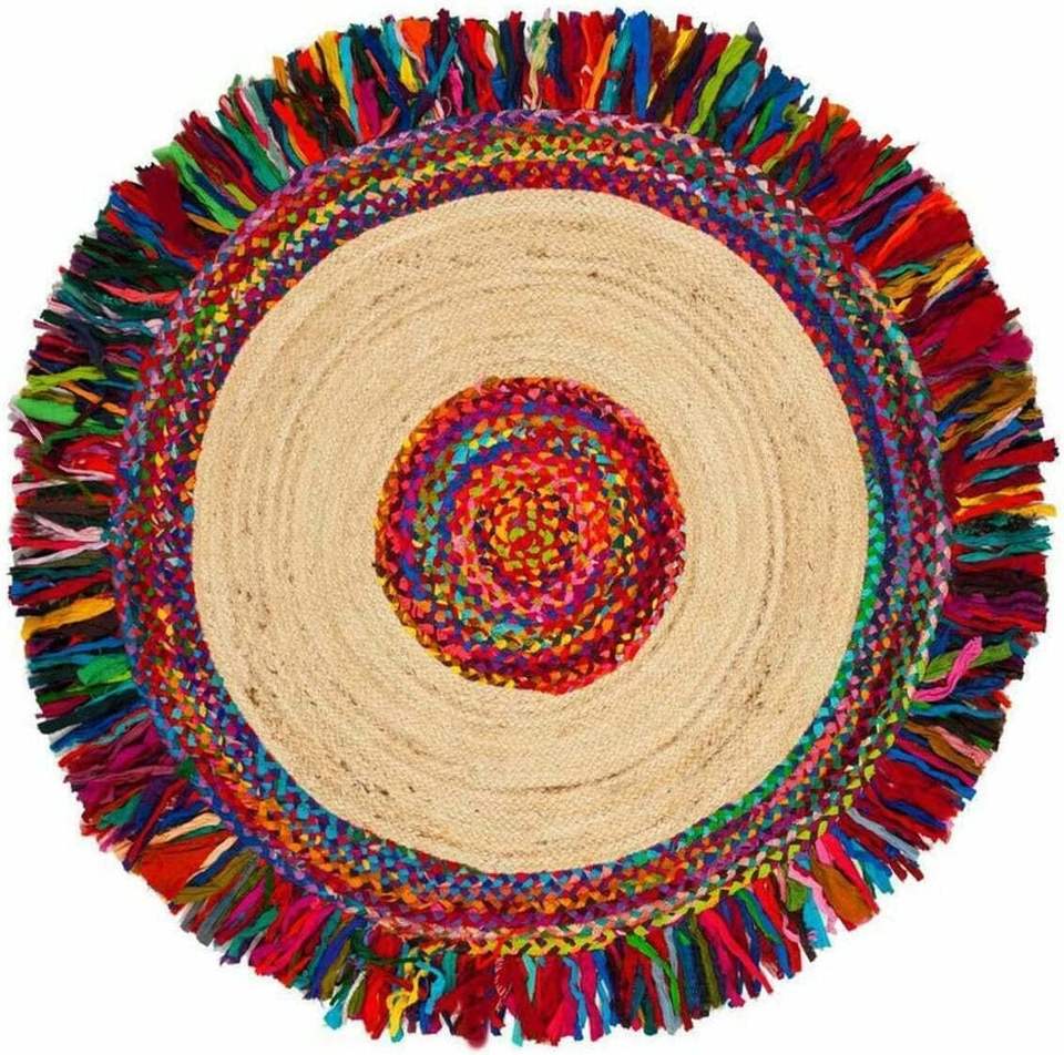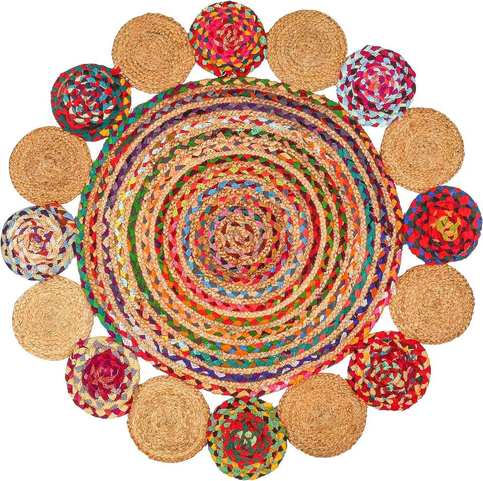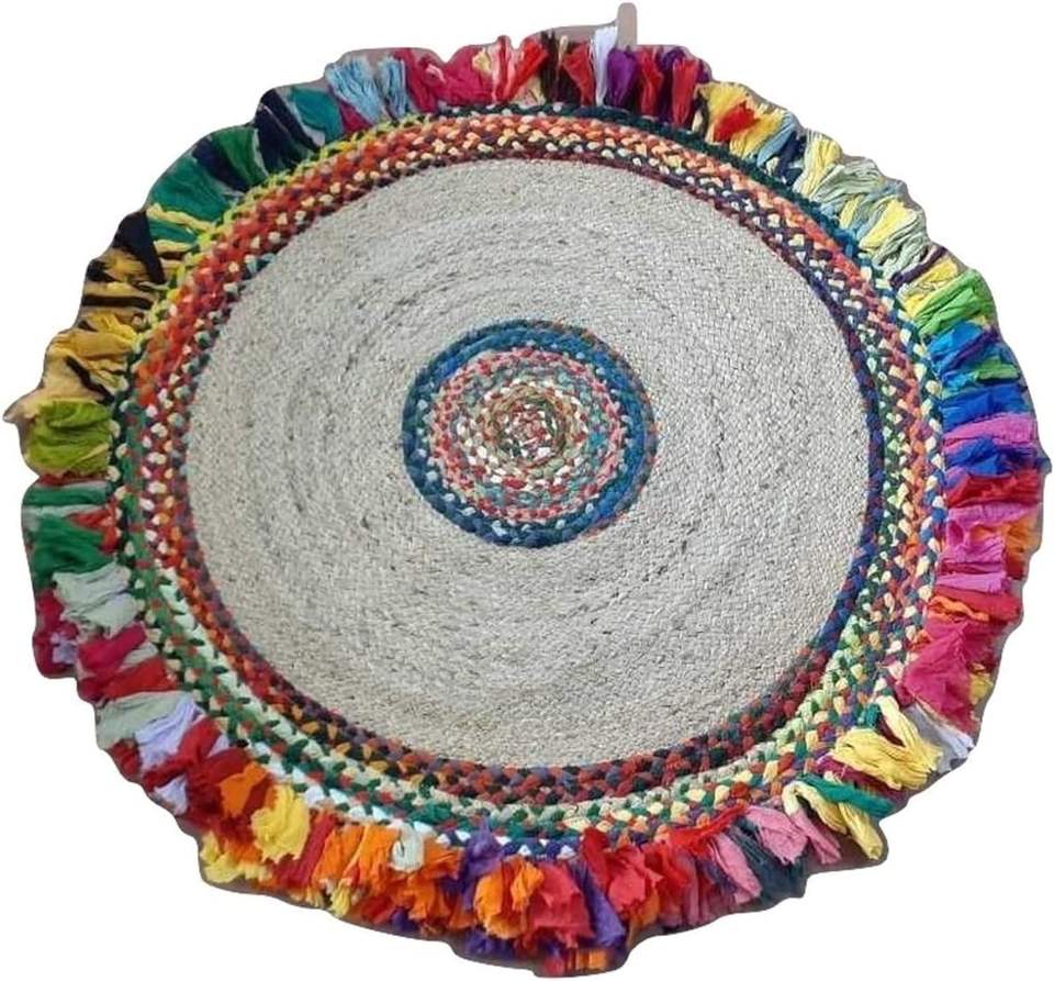 Jute Chindi Round 3ft Round Boho Rug, Reversible Natural Recycled Jute Rug Jute Round Rug, Farmhouse Rugs