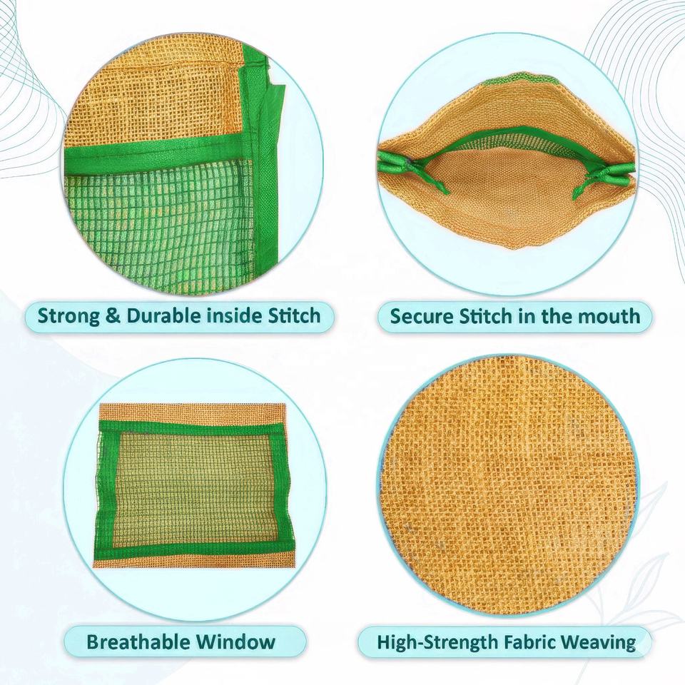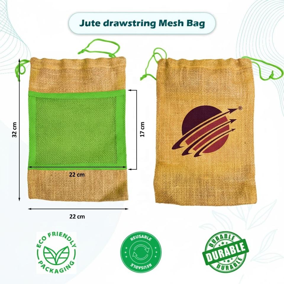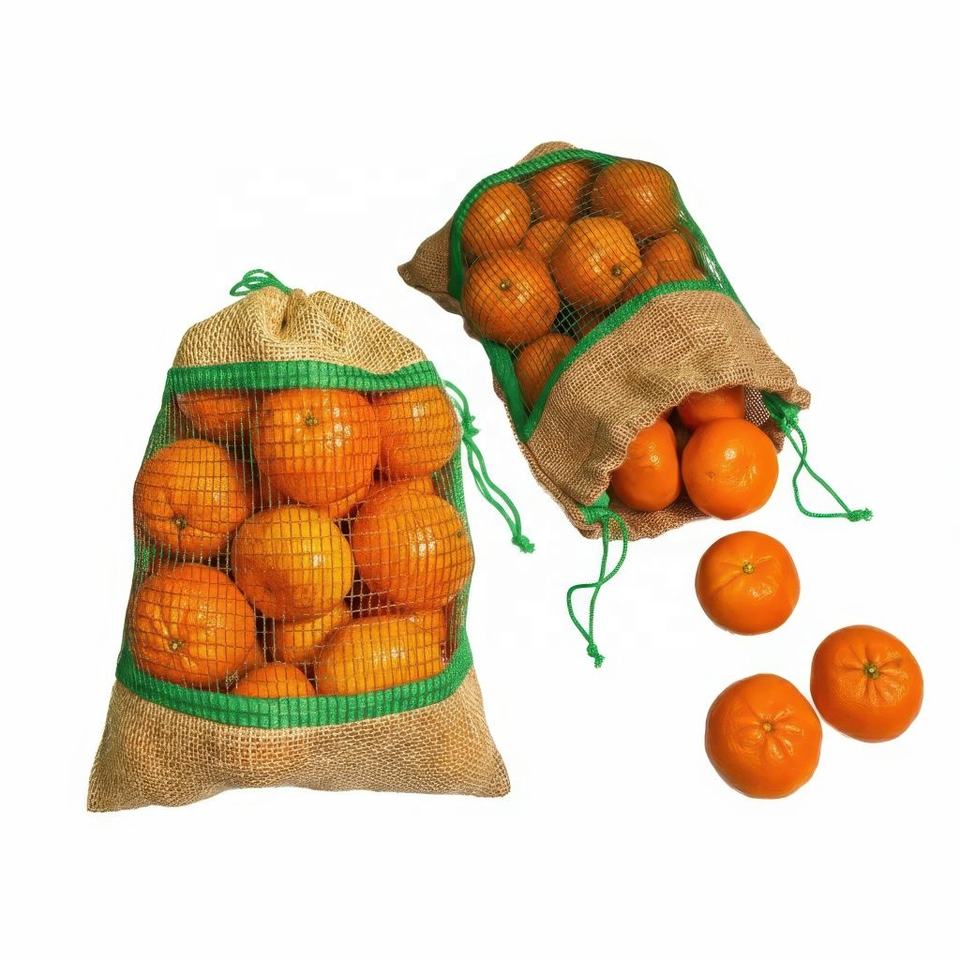 Jute Drawstring Mesh Bag 32*22 cm Strong Reusable Storage Sack for Carrying Fresh Fruits Vegetables and Daily Groceries