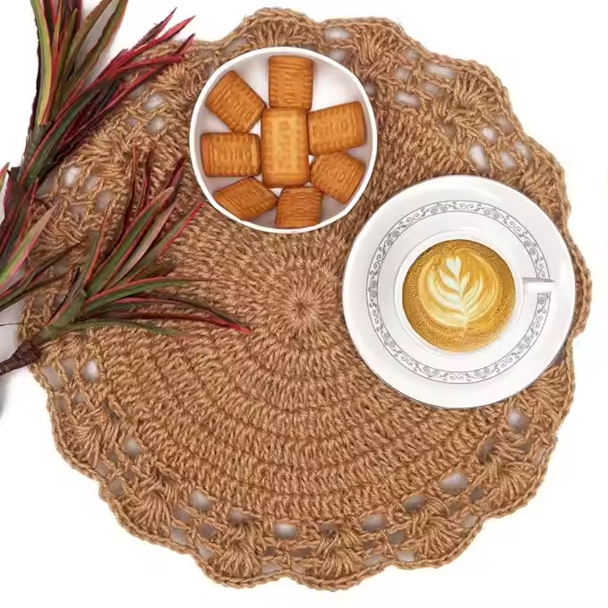 Jute Hand-woven Embroidered Placemat Anti-bacterial Moisture-proof Heat Insulation Mat Shooting Props Round Jute Decorative Mats