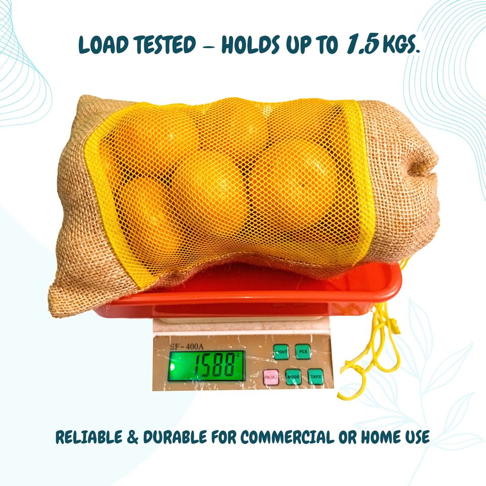 Jute Mesh Drawstring Bag 31x21cm Capacity upto1.5 kg Strong Stitch Breathable Window Weaving Secure Closure Reusable Storage Bag