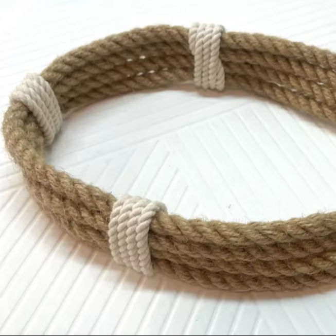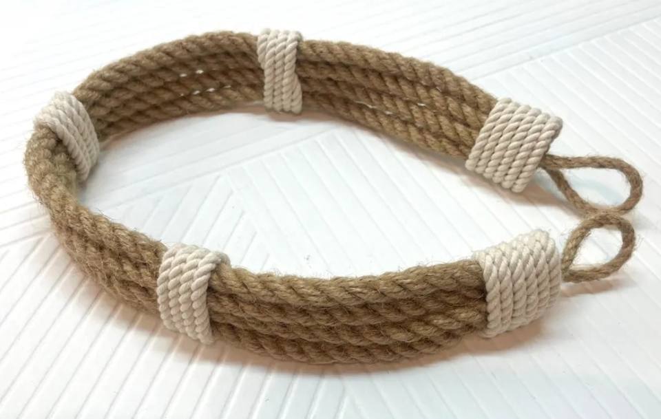 Jute Rope Curtain Tieback – 4-Strand Twisted Holdback with White Accent (Optional Hook)