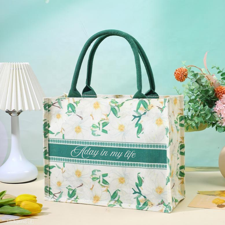 Jute Shopping Bag with Letter Pattern Zipper Closure Hand Length Handle Eco-Friendly Made in Viet Nam