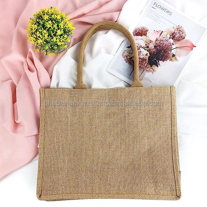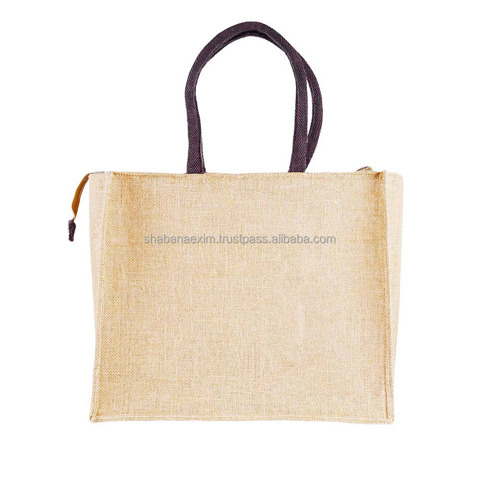 Jute Tote Bags with Canvas Pocket & Zipper Reusable Natural Jute Tote Bags for Gifts Shopping Modern Style Jute Burlap
