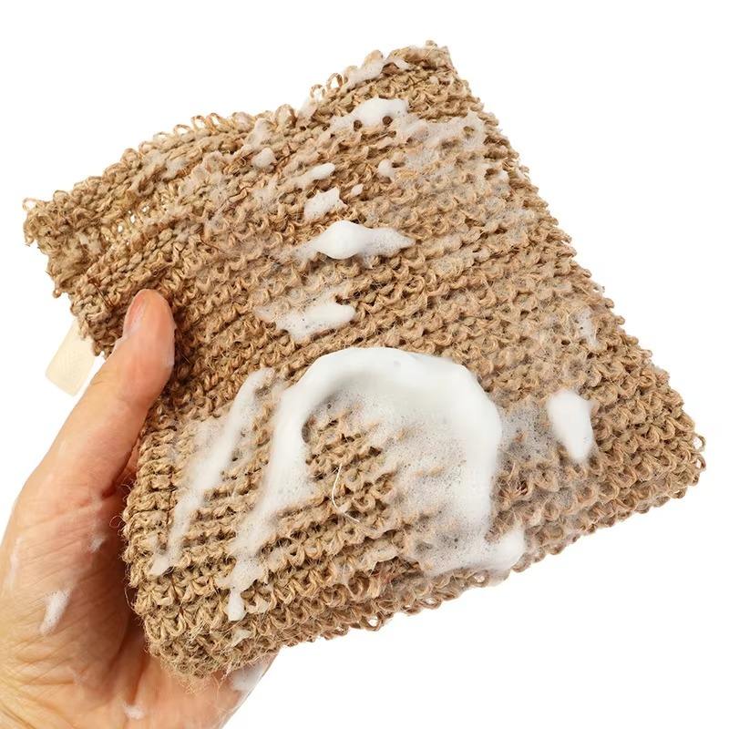 Jute Washcloth Towel Exfoliation Scrub Soft Linen Sisal Massage Shower Bath Cloth Fabric Exfoliating Face and Body Wash Cloth
