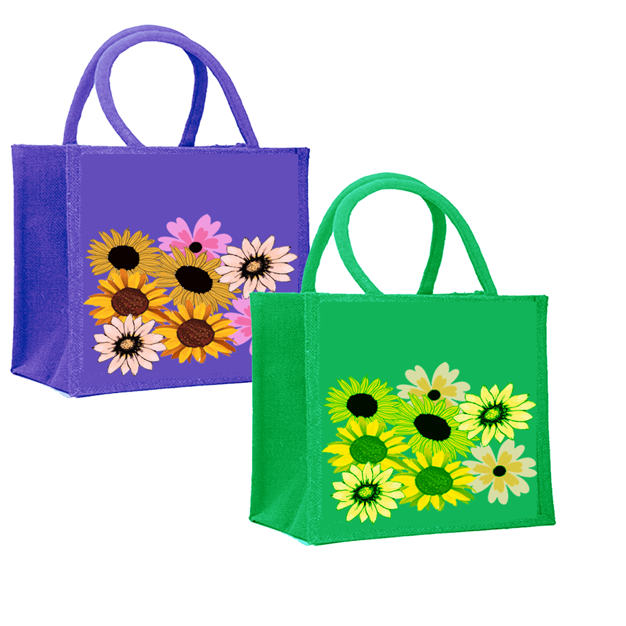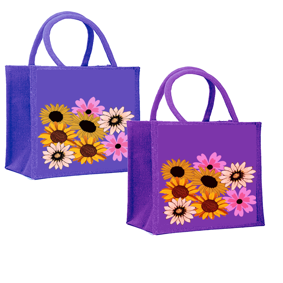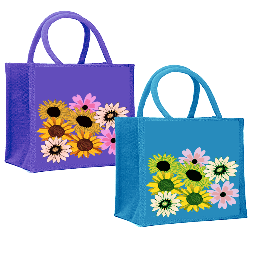 Jute Burlap Tote Bag with Nice All Over Many Color Flower Printing Manufactured in India West Bengal