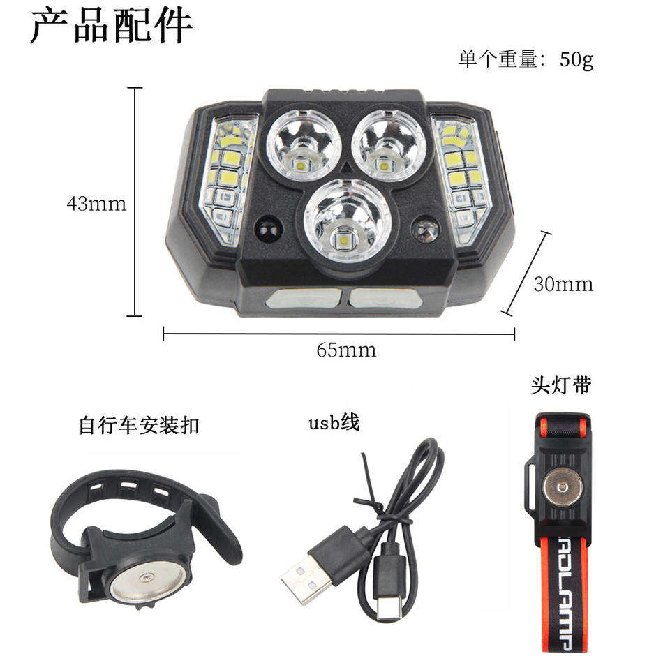 Jwplam LED Headlamp 4.5cm Rechargeable High Brightness Motion Sensor For Cycling Running Fishing