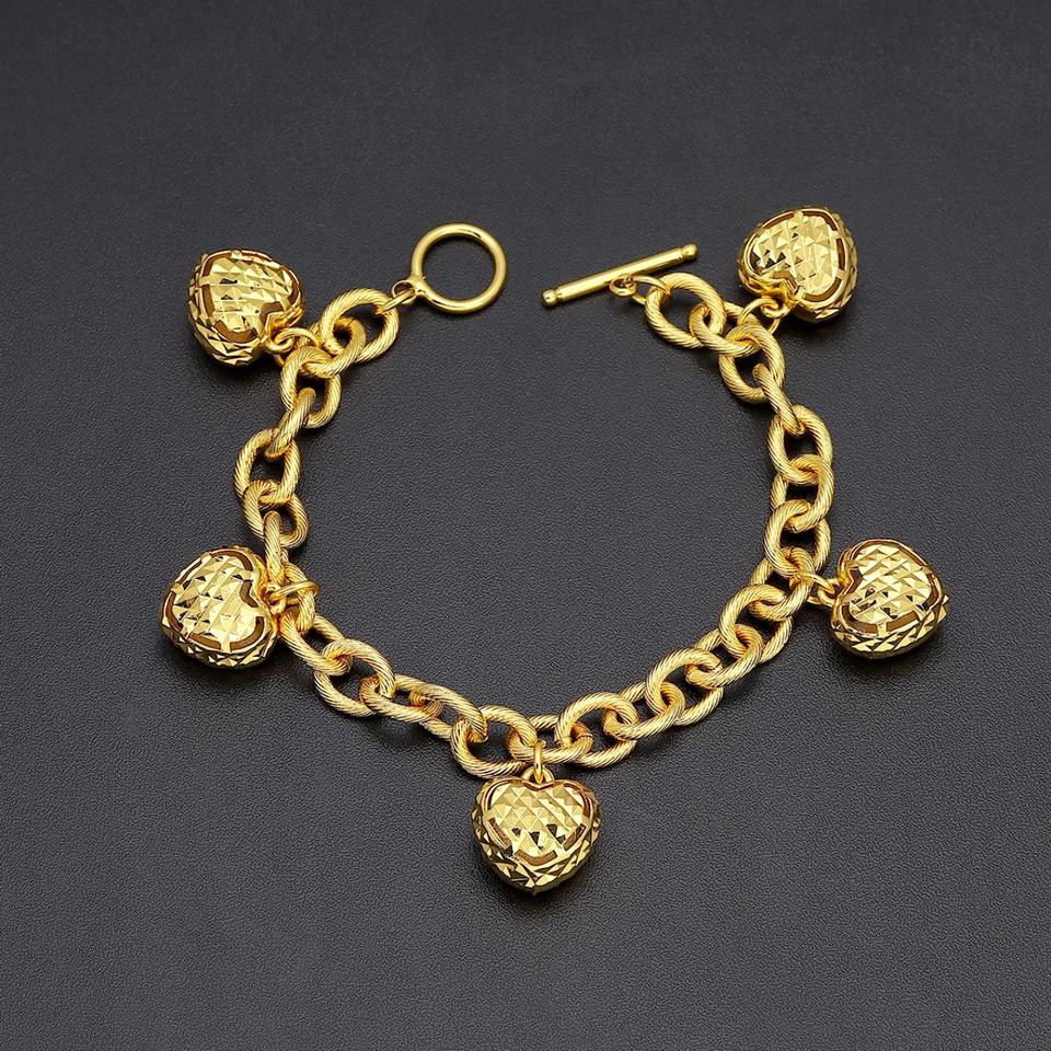 Jxx 24k Gold-Plated Women's Heart-Shaped Brass Bracelet Charm Bracelets with Zircon Fashion Jewelry Wholesale