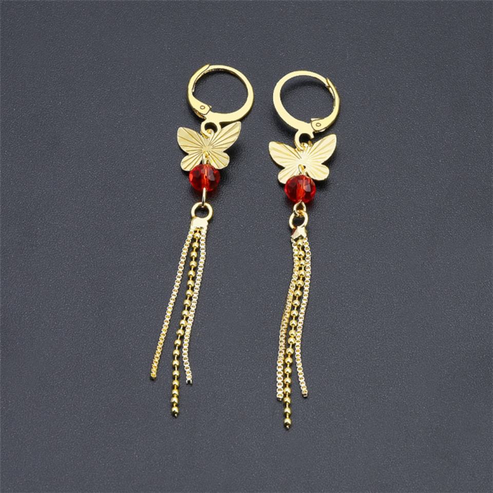 Jxx Direct Supply 24K Gold Plated Cubic Zirconia Long Drop Butterfly Earrings Fashion Design at Low Price