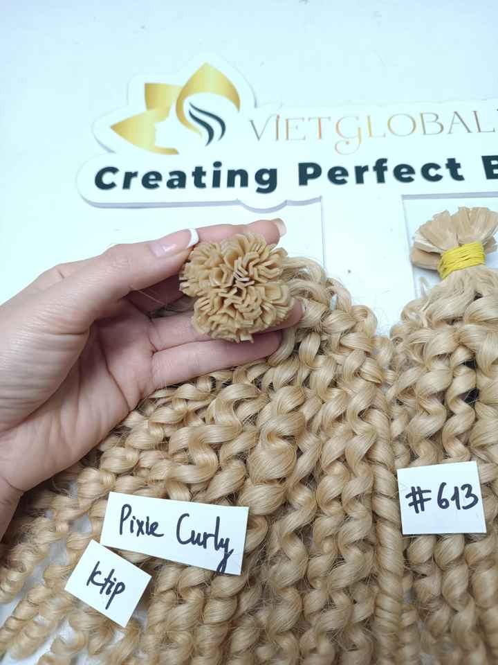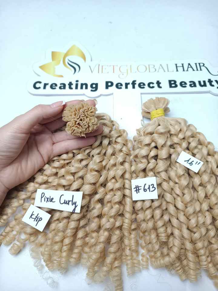 K- Tip : Pixie Curly Blonde Color 100% Human Hair Raw Vietnamese Hair Top 1 Vietnam