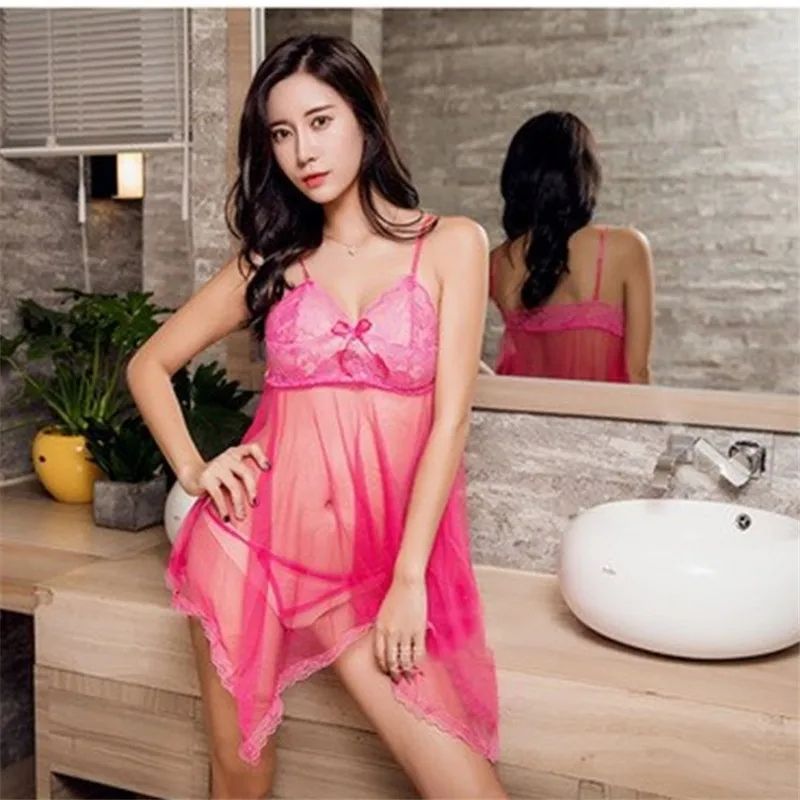 K187 Sexy Lingerie Lace Mesh Seductive Suit with extra Size European and American Suspenders Sexy Pajamas Nightgown