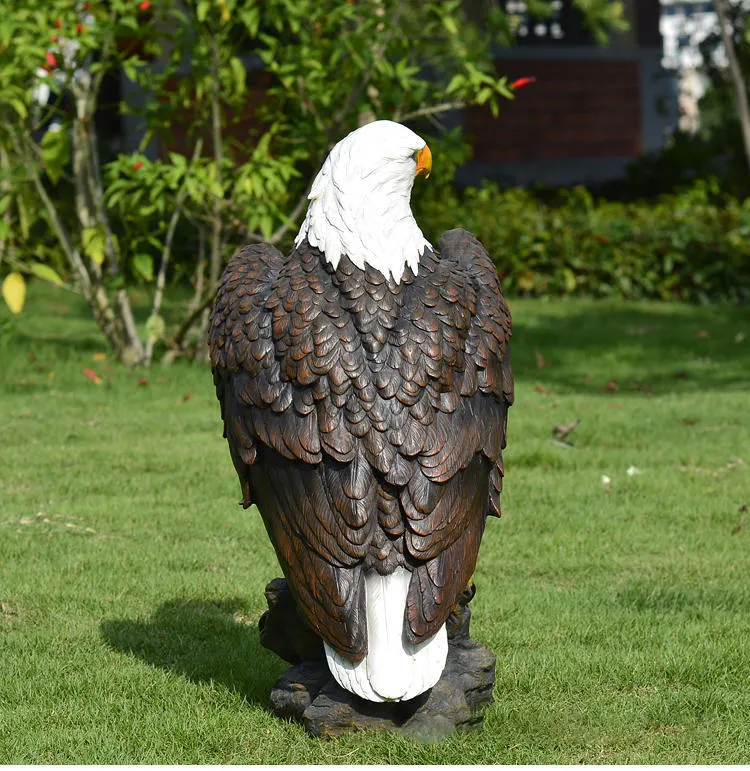K388 Lifelike Resin Eagle Statue Stone Base Garden Wildlife Lawn Ornaments Public Landscape Handmade 3D Artwork Retro Sculpture