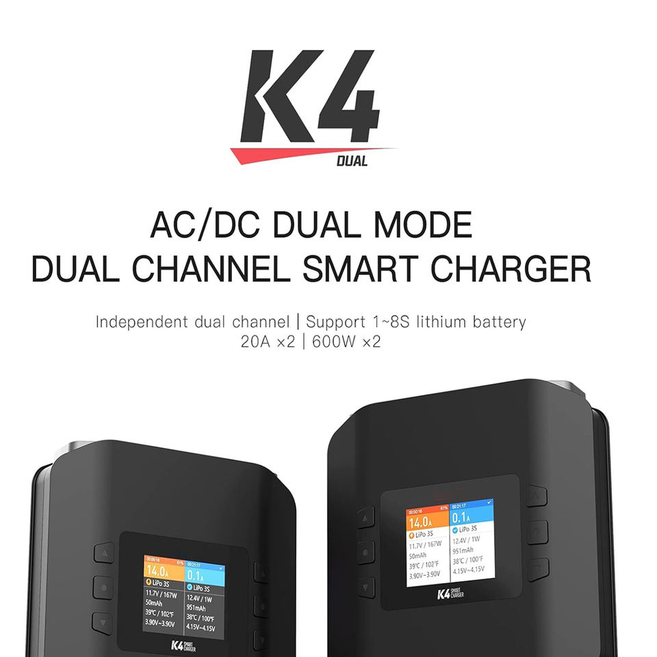 K4 Dual Lipo Battery Charger Discharger 1~8S RC AC 400W DC 600Wx2 LifeLilon/HvPbNiMH/Cd Battery Charger Made in China