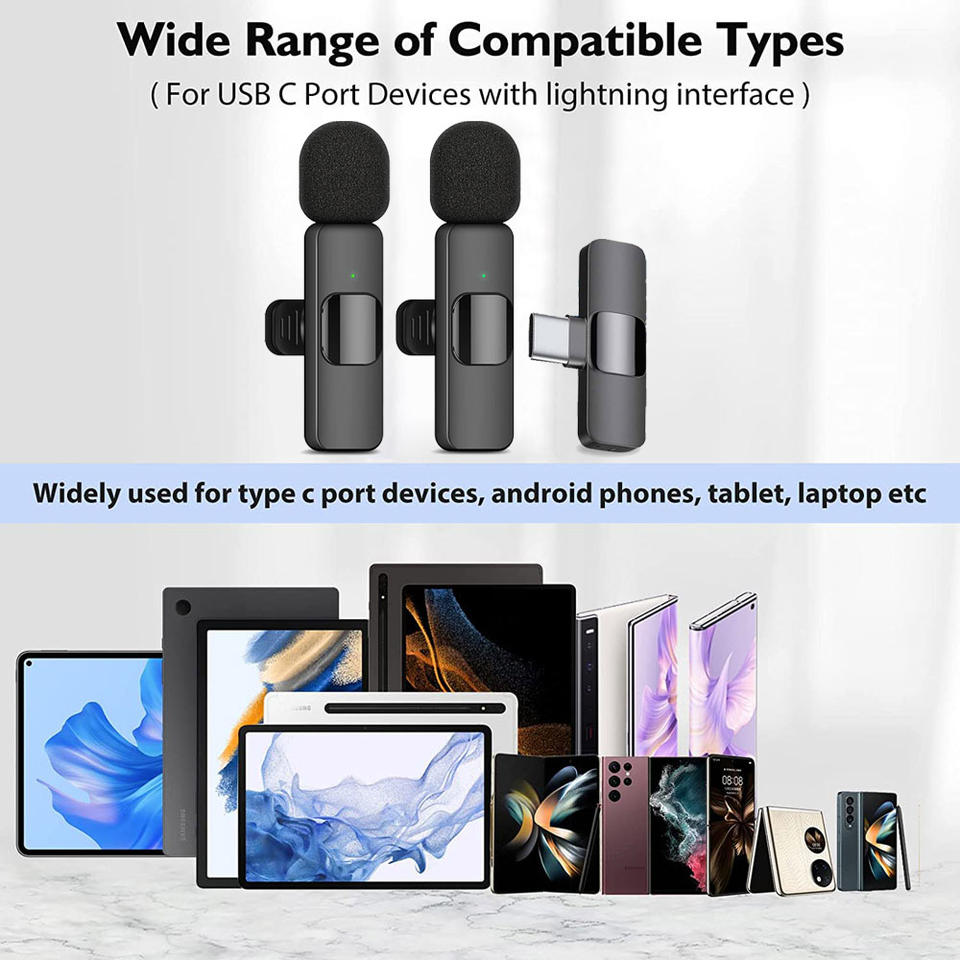 K9 Professional Mini Wireless Lavalier Microphone Type-C Connector for Phone Camera Interview Meeting