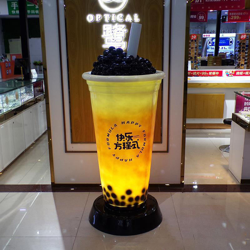 K900 Large Scale Fiberglass Simulated Milk Tea Cup Decoration for Coffee Shop Milk Tea Shop Entrance Floor Standing Sculptures