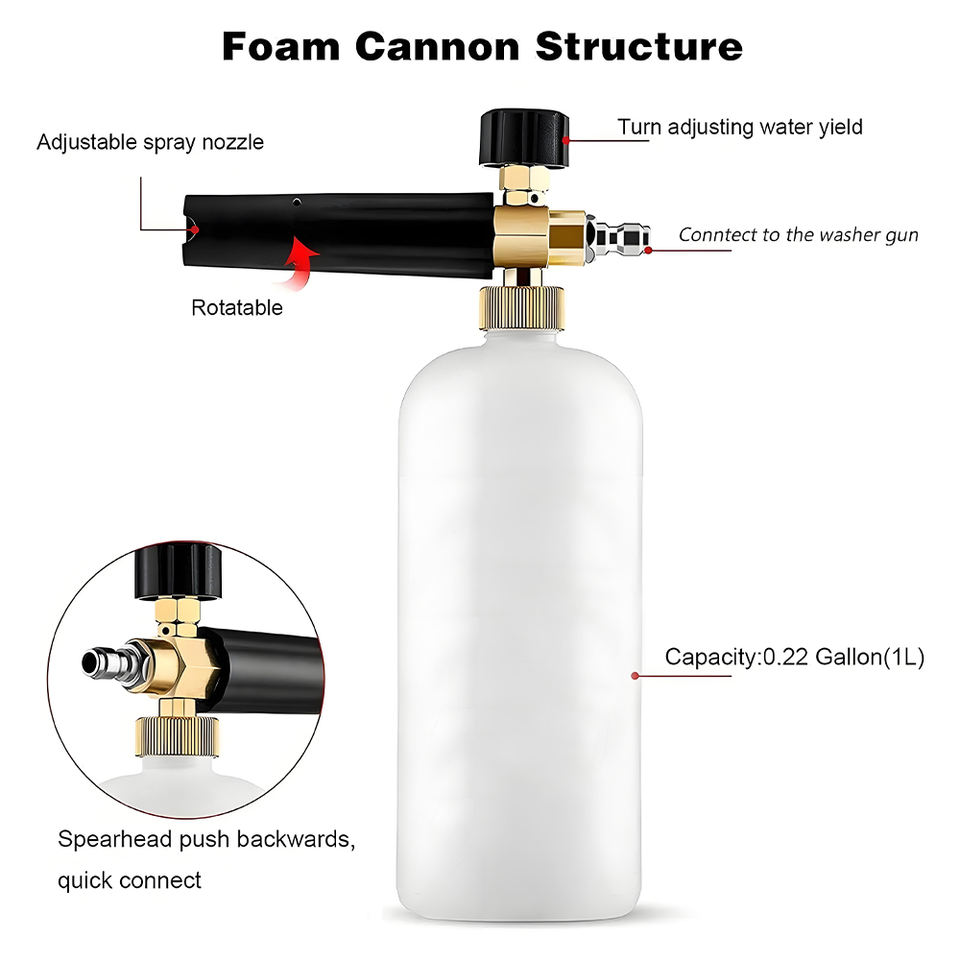 KAILUN High Pressure Foam Cannon Gun Kit with 1/4" Quick Connector M22-14mm Jet Wash Gun 4350 PSI 1L Capacity Alloy+PVC Material