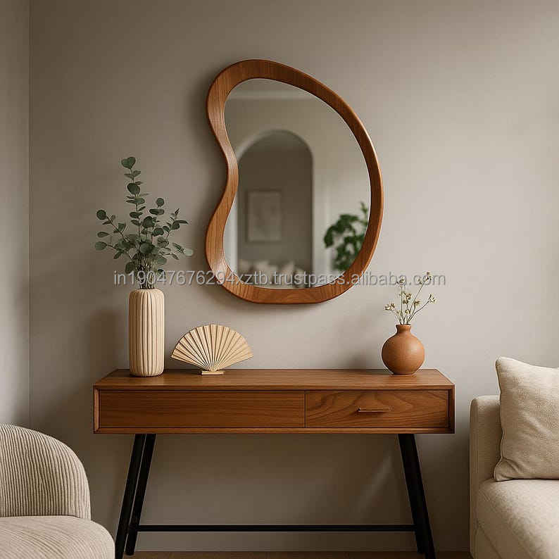 KALATRI Art Deco Eco-Friendly Handmade Wooden Lightweight 4mm Thick Wall Mirror Compact Shape Modern Home Decor Accent Walls
