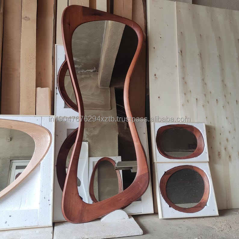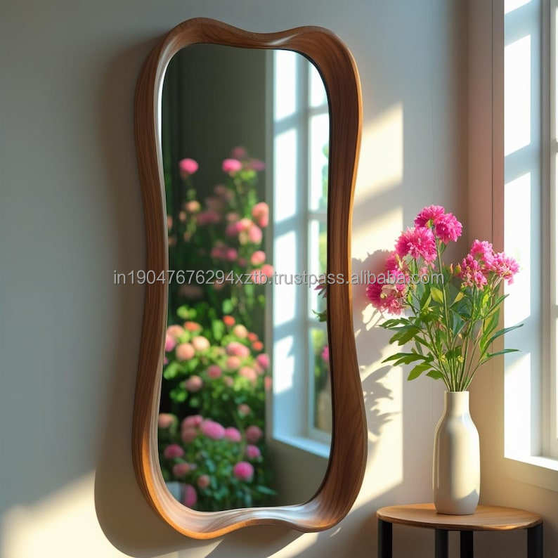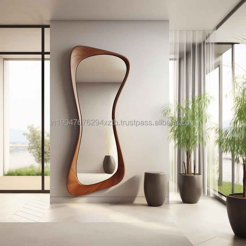 KALATRI Full Length Handmade Art Deco Wooden Frame Eco-Friendly Custom Design Asymmetrical Decorative Bedroom Wall Mirror