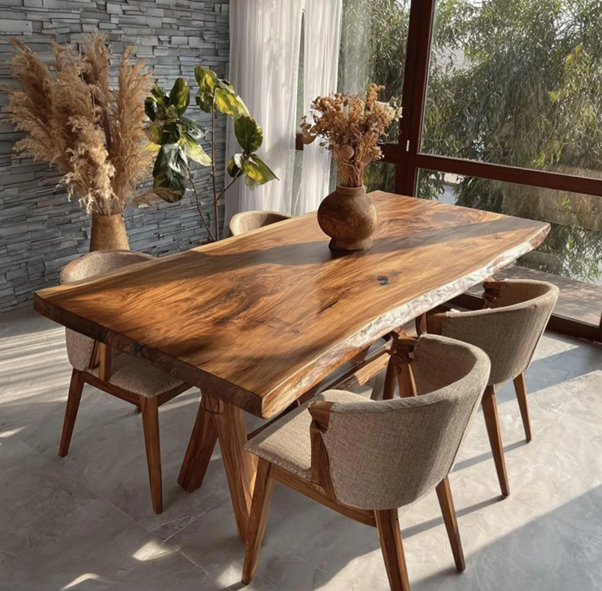 KALATRI Handmade Modern Square Solid Wood Eco-Friendly Dining Table Metal Legs Chandigarh Origin 6-Seater Home Hotel Use
