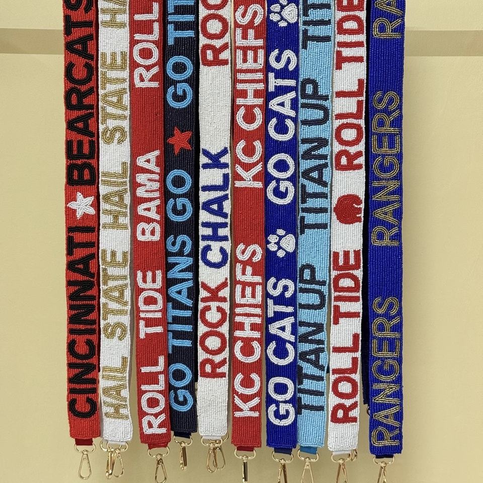 KC Chiefs Embroidered Glass Beads Handmade Customizable Color & Logo Purse Strap-CRYSTAL CRAFT Brand