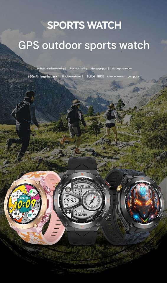 KC82 smart watch Bluetooth call outdoor GPS multi-sports heart rate blood oxygen pressure compass sports bracelet