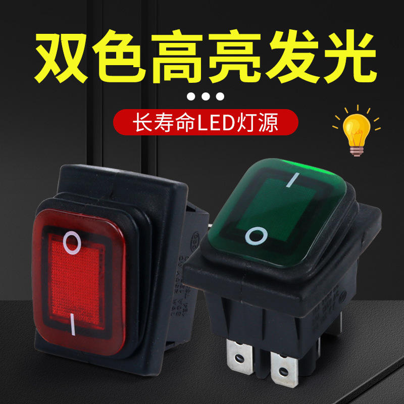 KCD4-201N Rocker Switch 4-Pin 2-Position With Indicator Light Waterproof 3A 250V DC 30V SPST Power Supply Switch