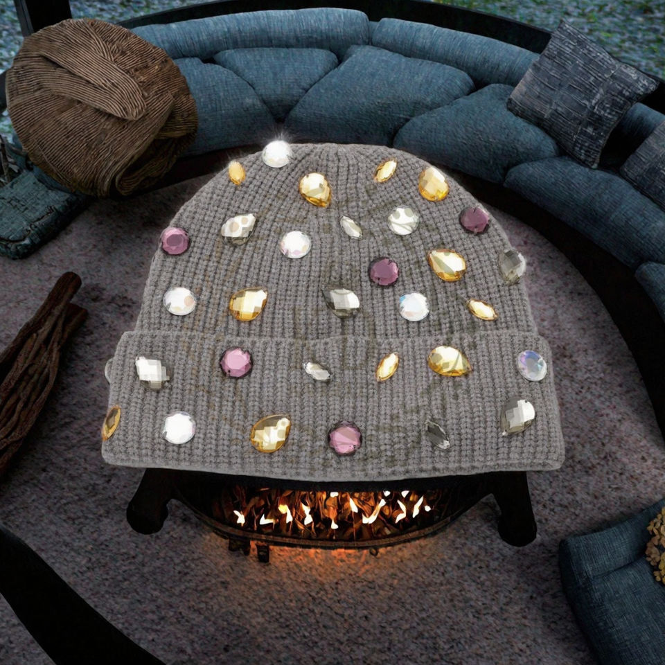 KD Striped Adjustable Unisex Beanie Hat Acrylic Candy Crystal Embellishments Ribbed Knit Common Fabric-Custom OEM/ODM