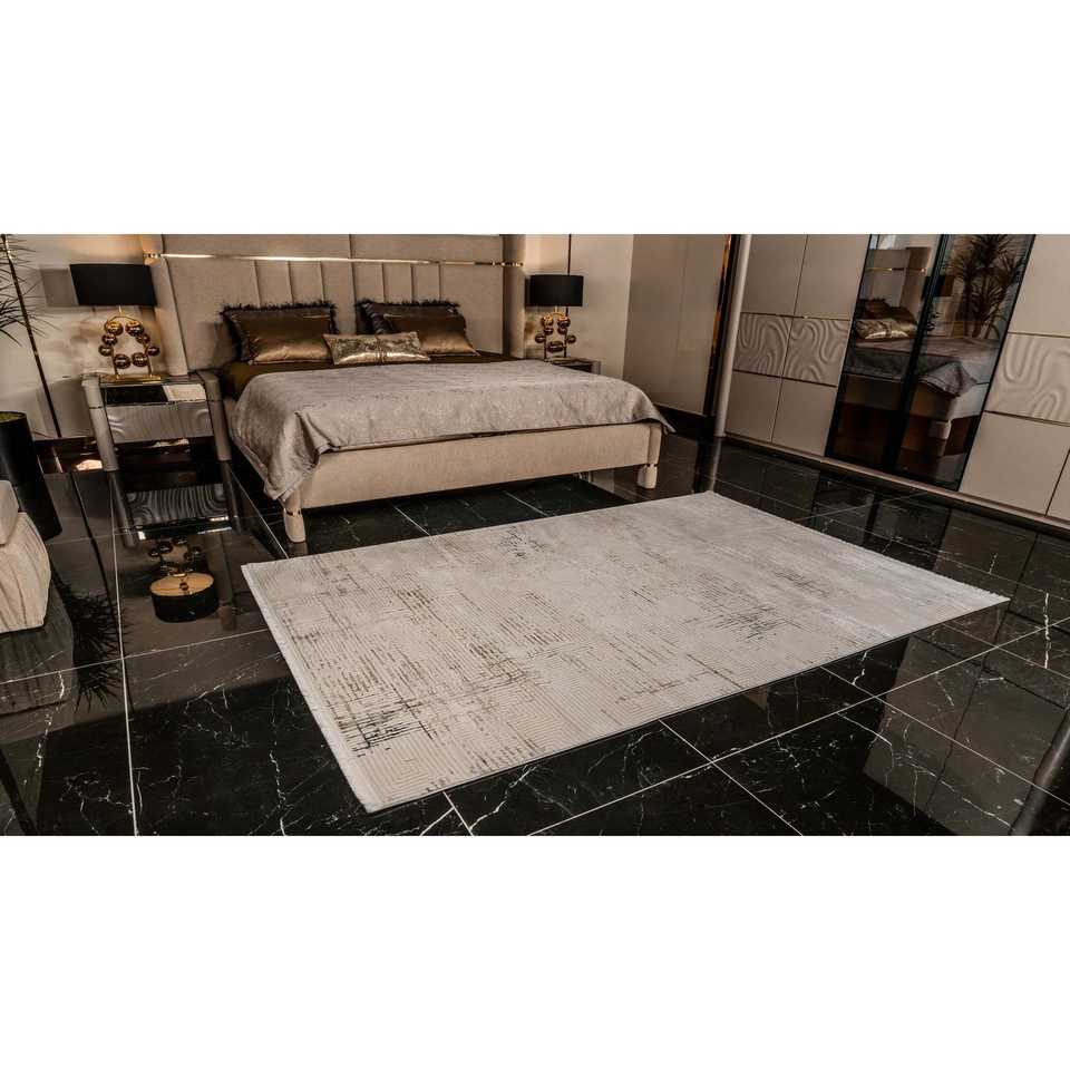 KD012 Cream Velvet Large Area Machine-Made Carpet Soft Textured Abstract Pattern Rectangle Room Rug Polyester Material