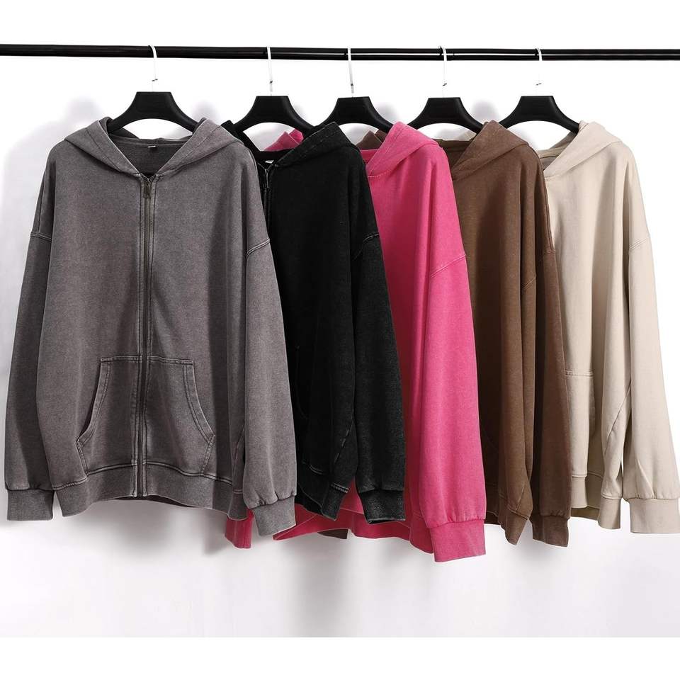 KEEPSHOWING Unisex Heavyweight Casual Sweatshirts Mens Oversized Zip Hoodie Solid Wash Old Craft Promotional Hoodies Sweatshirts