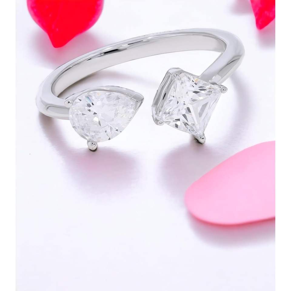 KEEVA JEWELS Classic Open Ring 1.50 Carat Cushion & Pear Shape Moissanite Gold Plated Sterling Silver Made of Metal