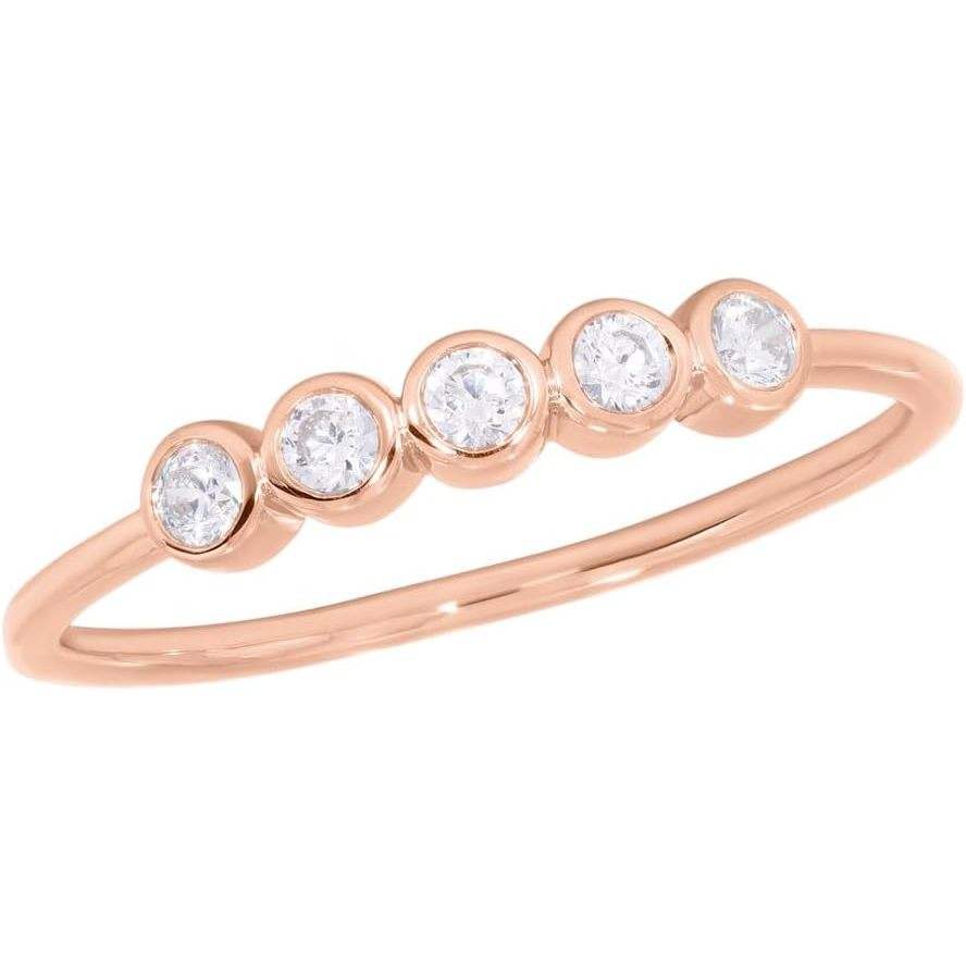 KEEVA JEWELS Solid Gold 5 Stone Stackable Ring 0.17Ct FG/VS Round Lab Grown Diamond Bezel Set