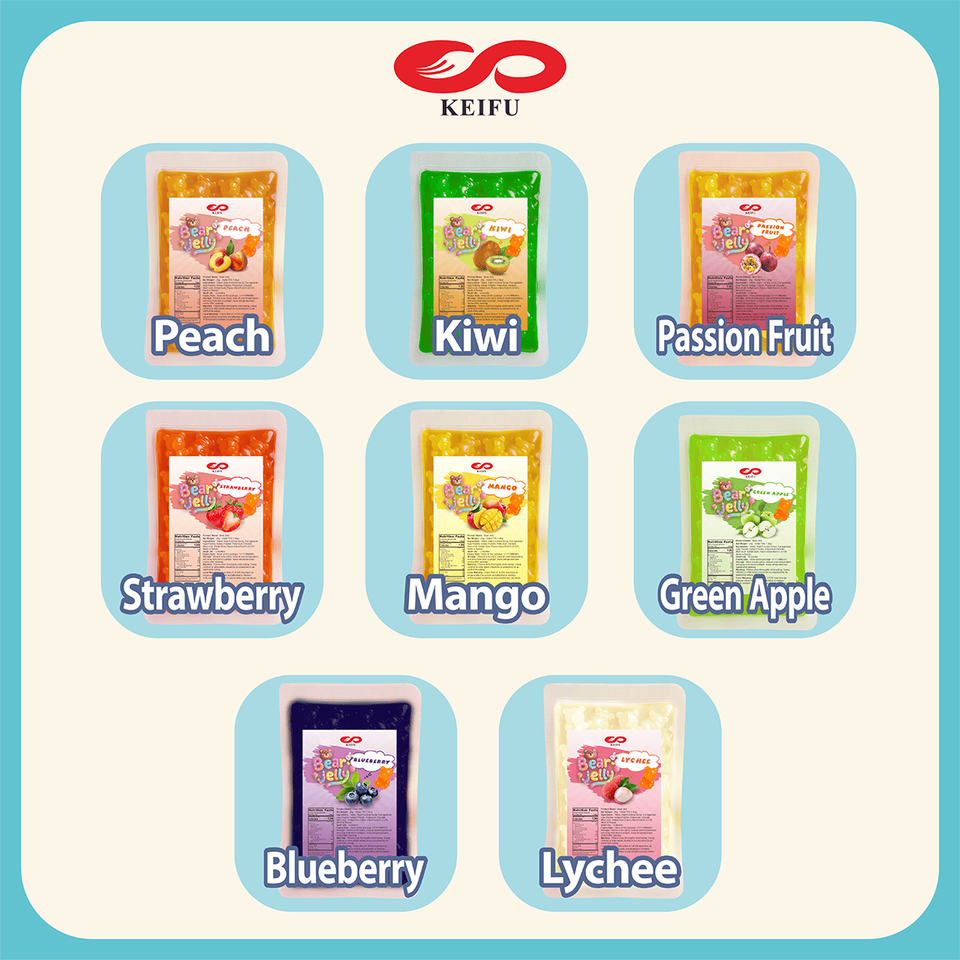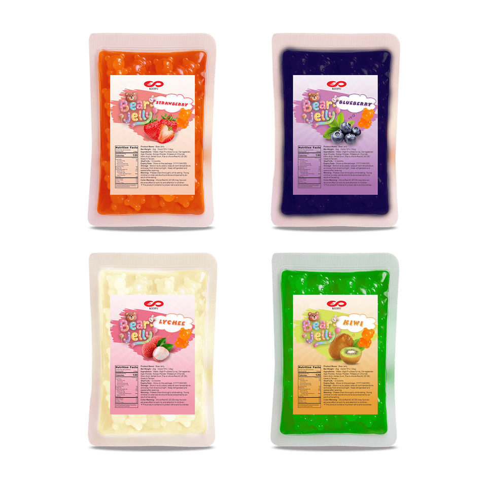 KEIFU 1.5kg Yogurt Bear Jelly Bubble Tea Topping in Private Label Bag Juicy Fruit Salad Balls