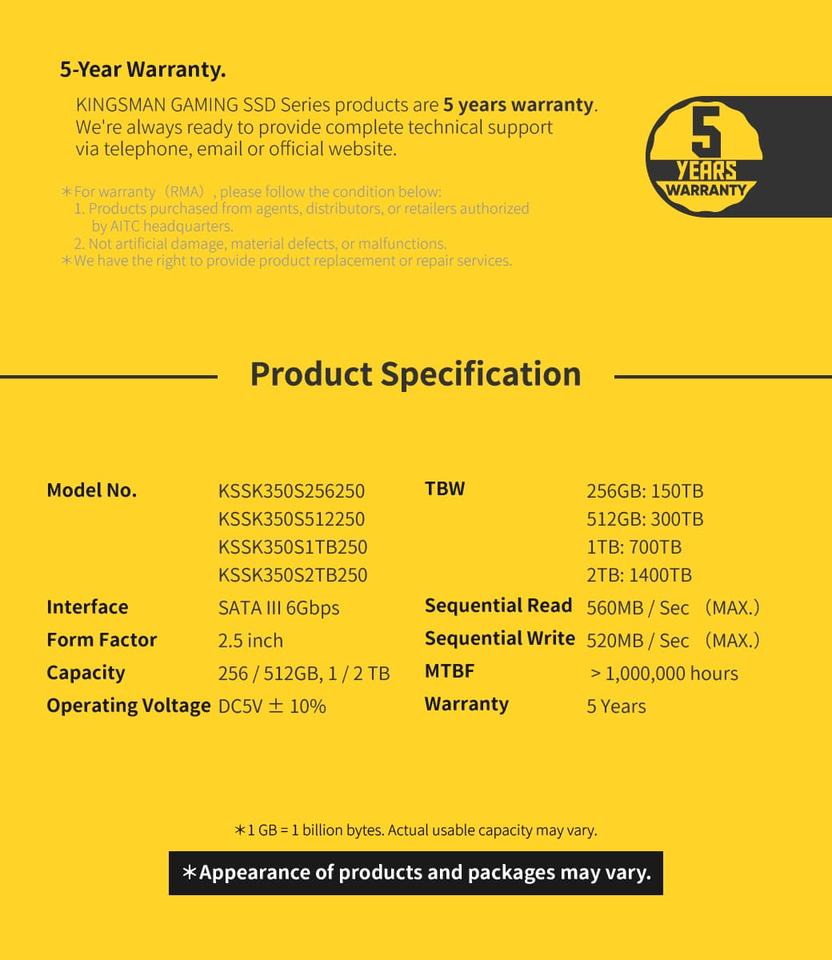 KINGSMAN GAMING 2.5 Inch SATA III 6Gb/s 1TB SSD Internal for Laptop with Plastic Shell and 5-Year Warranty