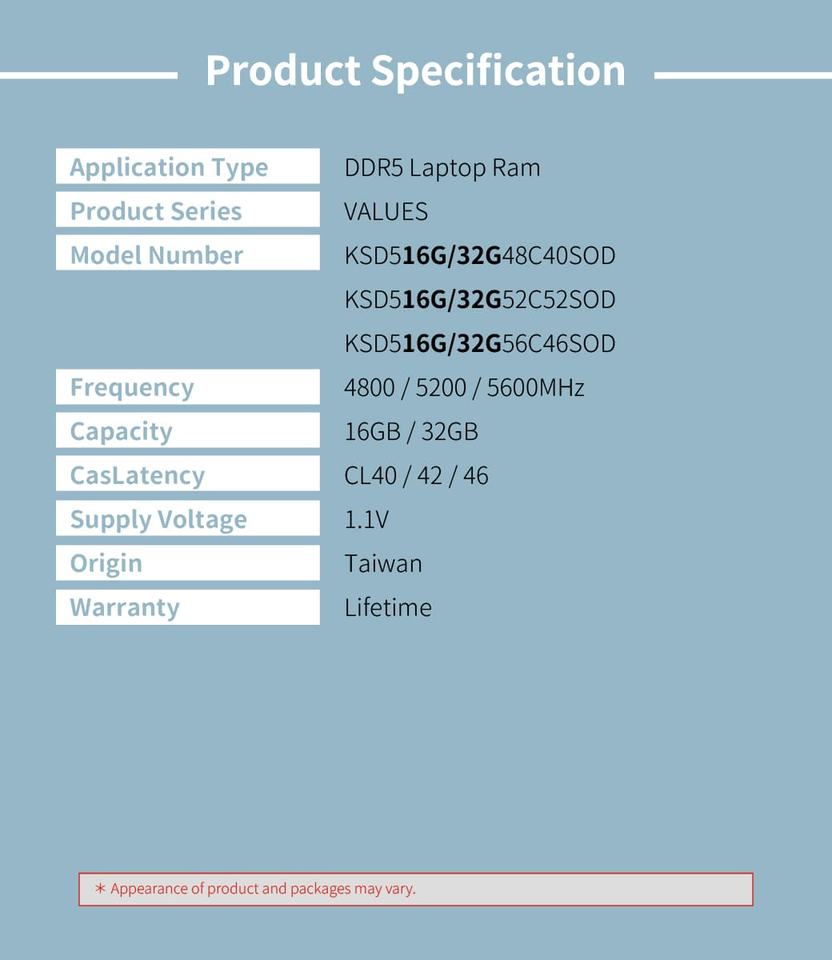 [KINGSMAN GAMING] DDR5 16GB 5600MHz SODIMM Laptop RAM 1.1V CE Certified in Stock Lifetime Warranty