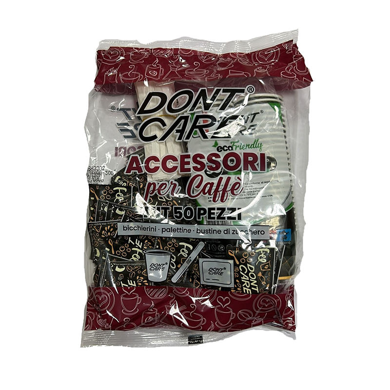 KIT Eco Natural Compostable Disposable Biodegradable Paper Cups + Agitators + Sugar 50pcs Bag Customizable logo 100% Ecofriendly
