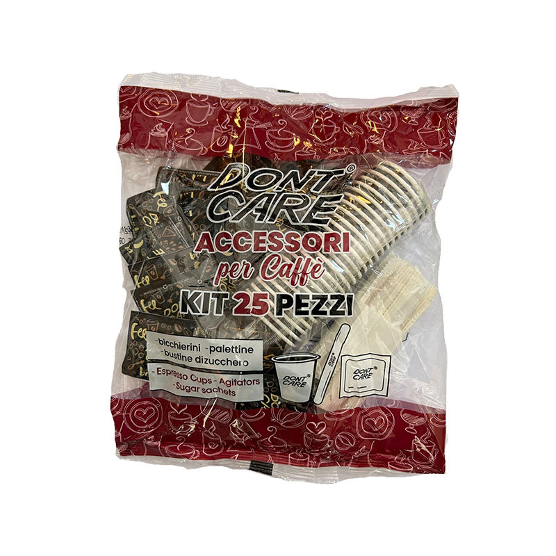 KIT Gold Compostable Disposable Biodegradable Paper Cups + Agitators + Sugar 25pcs Bag Customizable logo 100% Ecofriendly
