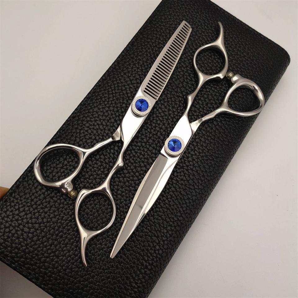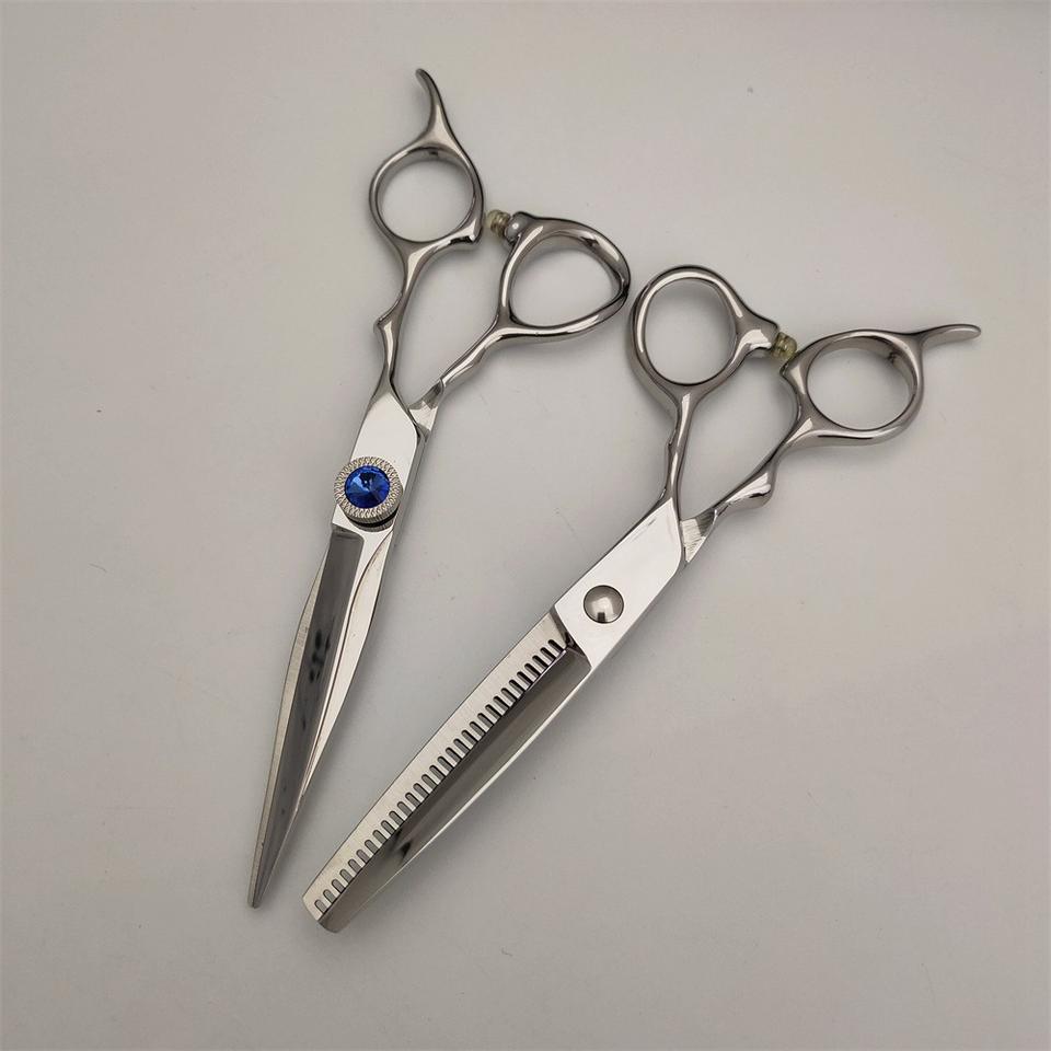KIU-01 Hair Scissors Thinning Shears 62mm Stainless Steel Beauty Tool Right Handed With Blue Gemstone Design