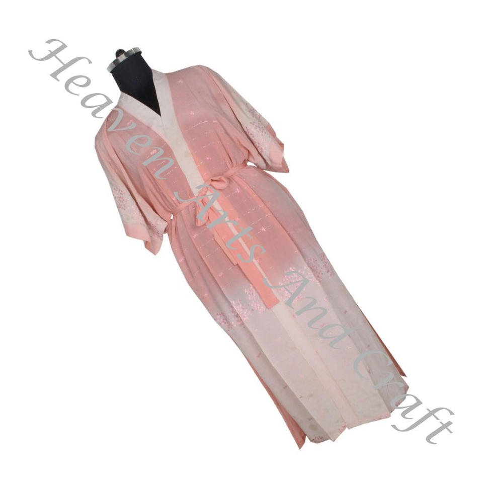 KL008 Vintage Silk Sari Long Sleeve Vintage Sari Kimono Long Boho Dressing Gown Vintage Kimono Long Bridesmaid Dress Christmas