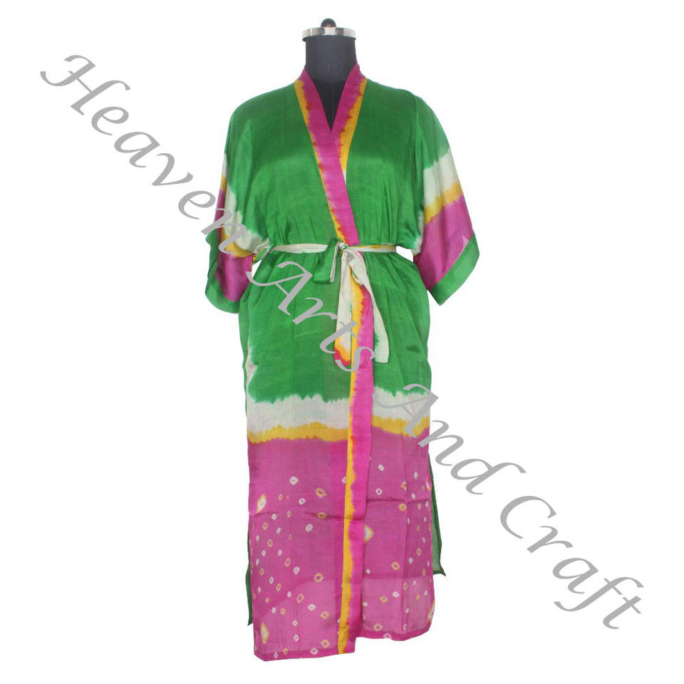 KL010 Bohemian Silk Sari Kimono Long Robe Summer Wear Bikini Silk Cover up Wholesale Silk Sari Vintage Vintage Sari Kimono Long