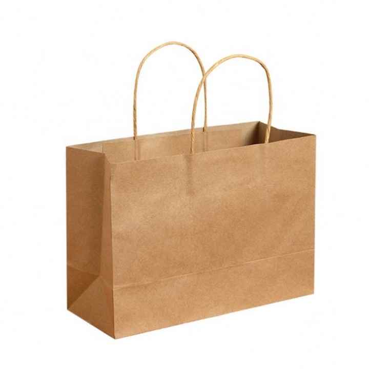 KM Customized Color & Size Promotional Kraft Paper Brown Gift Bag with 8 Color Flexo & UV Printing