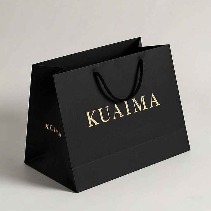 KM Wholesale Luxury Black Art Paper Bag Custom Printed Logo Luxury Shopping Gift Packaging with Own Logo