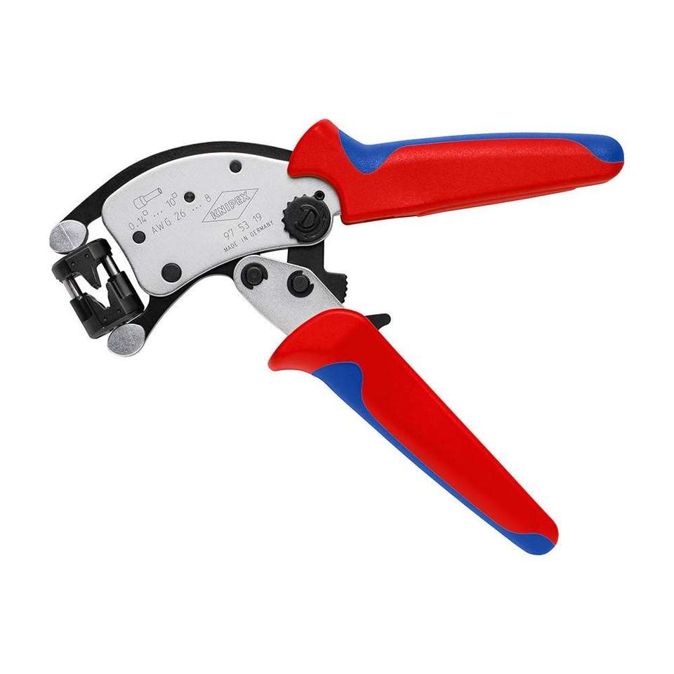 KNIPEX 97 53 19 SB Twistor® T Self-Adjusting Crimping Pliers for wire ferrules with rotatable die head with multi-component grip