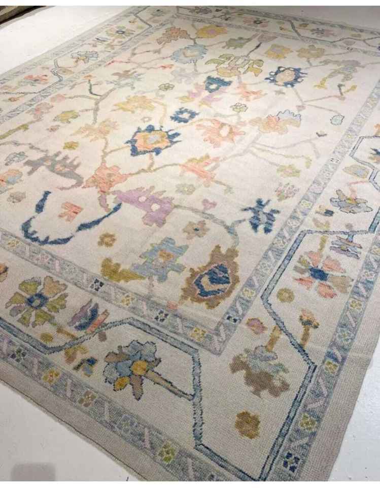 KNOT RUG High Quality Turkish Knot Oushak Rug Handknotted Wool Carpet Area Rug Set for Living Room & Bedroom Ivory 9x12 Inches