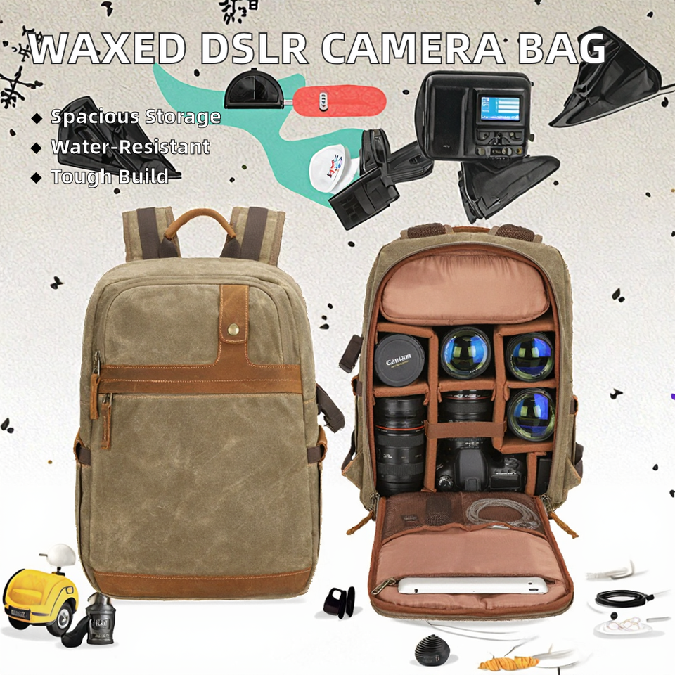 KOOGER D1383 Vintage Batik Waxed Canvas DSLR Photography Backpack Waterproof Camera Bag Large