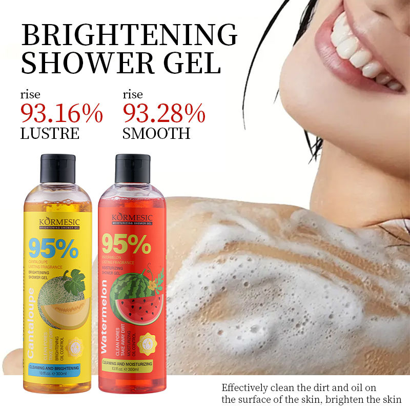 KORMESIC 300ml Wholesale Natural Shower Gel Watermelon Moisturising Cantaloupe Brightening Bath Body Wash with Bubble Feature