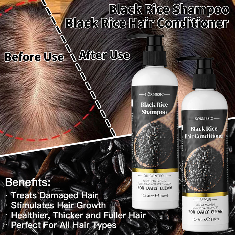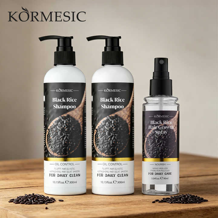 KORMESIC Private Label Black Rice Moisturizing Hair Care Wash Set Hair Spray Shampoo Conditioner Korean Nourishing Anti-Dandruff