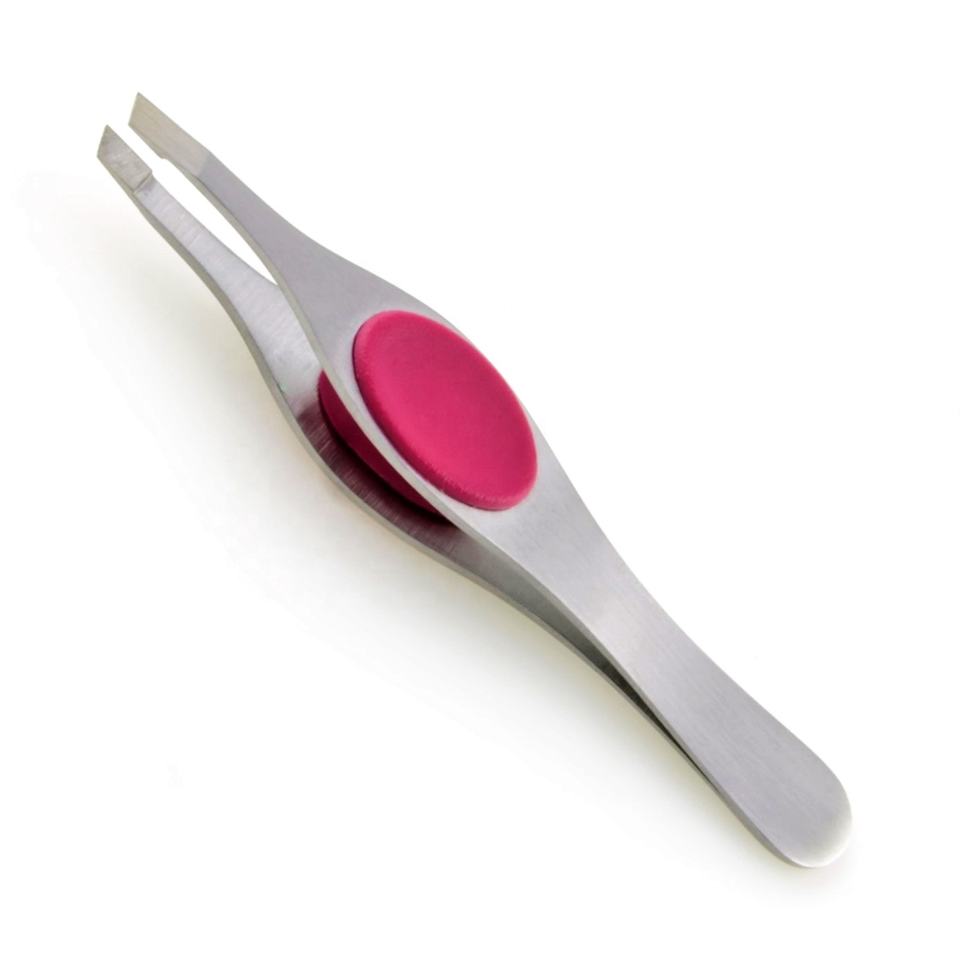 KOUNAIN Professional Beauty Tools Slanted Tips Eyebrow Tweezers Stainless Steel Satin Rainbow Plasma Eyebrow Coated Silicon Grip