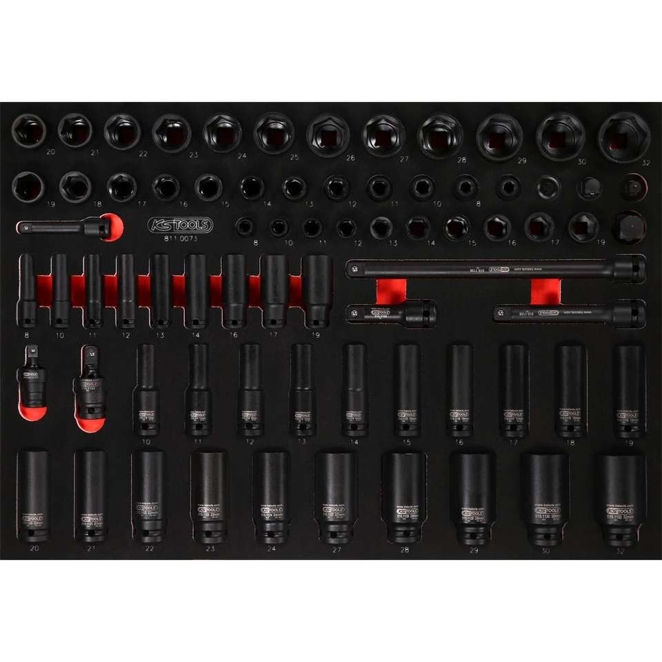KS TOOLS 3/8" + 1/2" socket spanner set in foam insert, 73 pcs