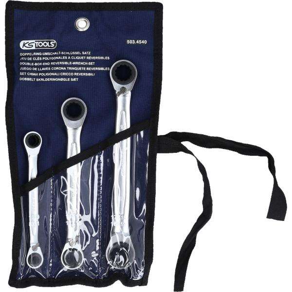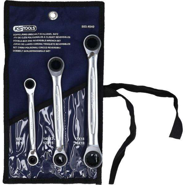 KS TOOLS - 503.4540 4 in 1 GEAR plus reversing double ratchet ring spanner set (3 pcs) - EAN 4042146225394 WRENCHES