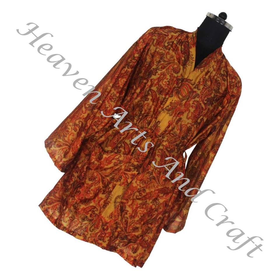 KS005 Beautiful Vintage Sari Kimono Short Robe Vintage Summer Floral Print Bohemian Oversized Full Length Sleeve Holiday Vintage