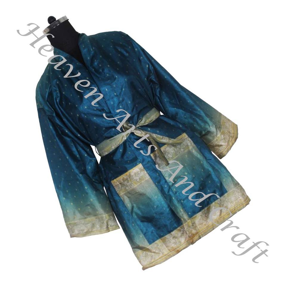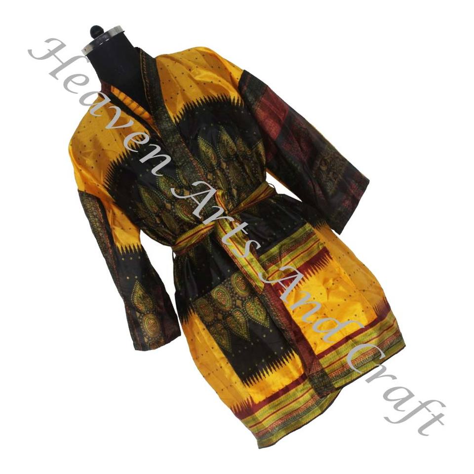 KS005 Bohemian Silk Vintage Sari Kimono Short Boho Gypsy Recycled Sari Silk Vintage Sari Kimono Short Robes Gown Women Sleepwear